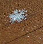 Katselin viikonloppuna pienten lumihiutaleiden rauhallista laskettelua alas taivaalta, ikkunalaudalle päätyneet yksittäiset pienet hiutaleet olivat uskomattoman kauniista. Päätin kaivaa kameran esiin, jos vaikka onnistuisin jonkun nätin yksilön taltioimaan kameran muistikortille. Helpommin sanottu kuin kuvattu. Hienoimmat hiutaleet sulivat nopeasti, lisäksi kamera ei tahtonut millään tarkentaa niin pieneen ja olemattomaan kohteeseen. Lopulta sain kuvattua viereiseen sormeeni tarkentaen ihan kohtuullisen yksilön. Luonnossa se näytti kyllä paljon paremmalta kuin kuvassa.