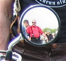 Minä en mopoa kummempaa kaksipyöräistä ole koskaan ajanut. Tuo kuva oli muistaakseni Nortonin taustapeilistä otettu.